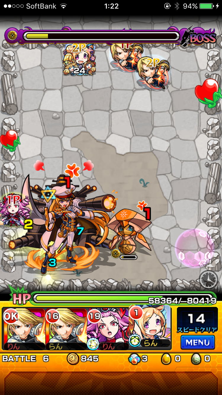 リザ・ホークアイを2体編成に組み込んだことで、跳弾友情のおかげでバリア関係なくハンシャインが溶けていくので
