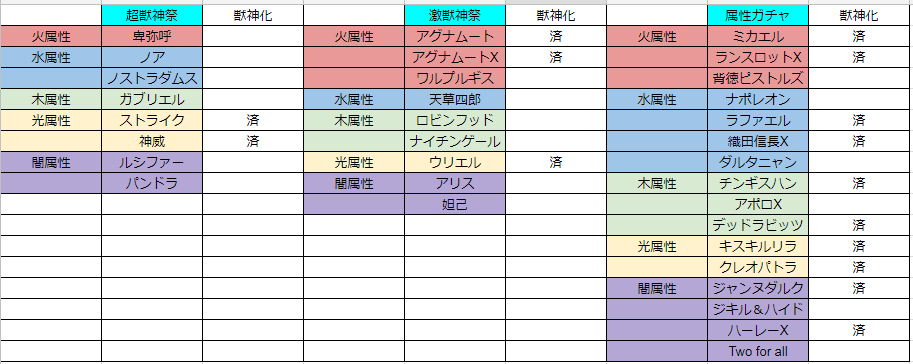 限定キャラの水属性で獣神化が来ていないキャラは5体です。