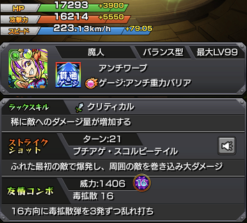 感染毒1ターン7000ダメージ有り。貫通制限雑魚で状態異常回復有り。