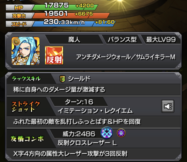 反射制限が敵の攻撃力UP、貫通制限が敵の攻撃力ダウン。