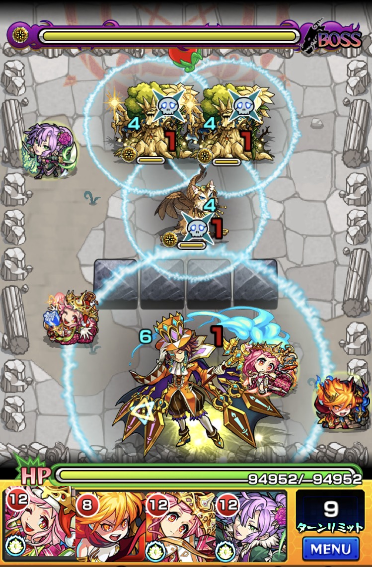 ドクロ雑魚処理後はボスの防御力ダウンが発動します。