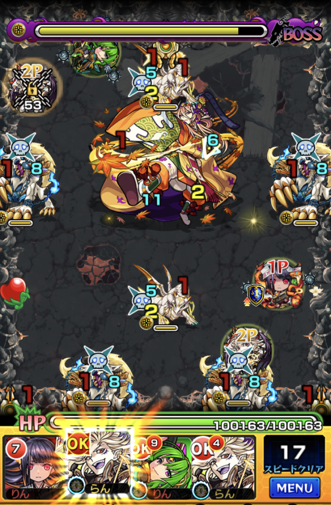 ボスHP1200万くらいなので多め。