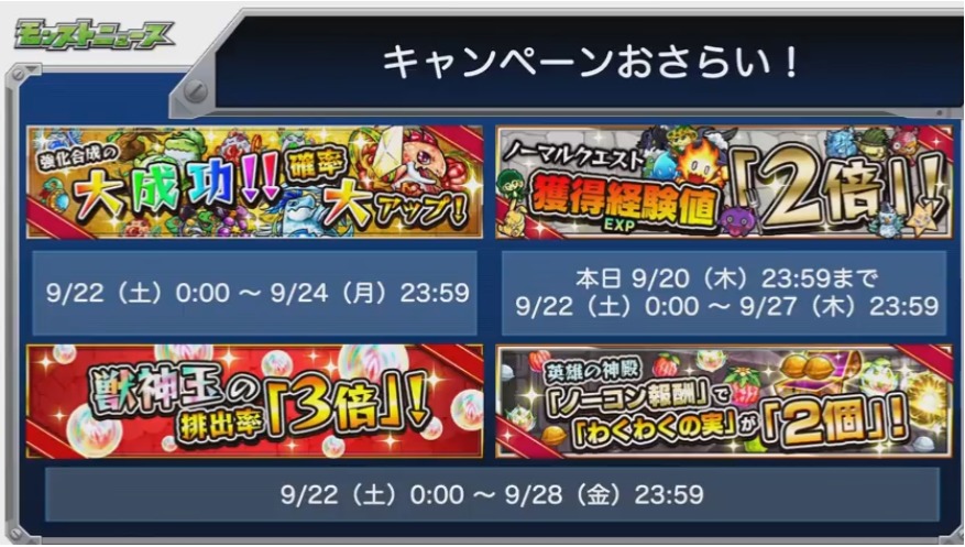 9/22から『わくわくの実』ノーコン2個の神イベが再降臨です。