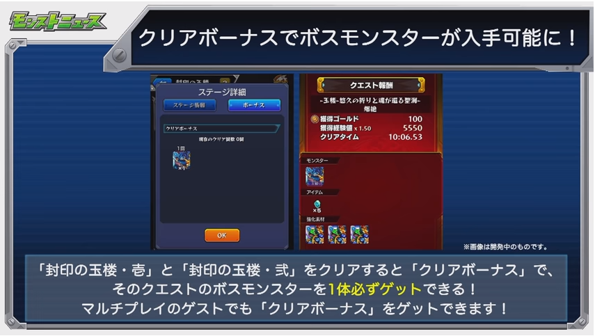 ボスモンスターをクリア後1体GETできるように仕様変更となります。