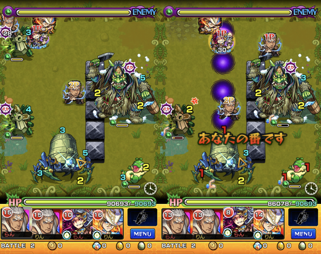 こっから緑リドラ登場。敵全体のHP回復をしてきますが、このパーティの火力だと放置していても可。